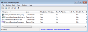 AppCompatibilityView - это простой инструмент, который отображает список всех программ, которые запускаются с различными настройками совместимости и хранится в реестре в папке HKEY_CURRENT_USER \ Software \ Microsoft \ Windows NT \ CurrentVersion \ AppCompatFlags \ Layers и HKEY_LOCAL_MACHINE \ Software \ Microsoft \ Windows NT \ CurrentVersion \ AppCompatFlags \ Layers keys.