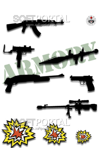 Armory - программа содержит изображение различного автоматического и полуавтоматического оружия, а так же издает звук выстрела/очереди если на оружие нажать пальцем.