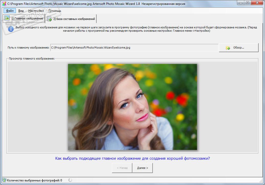 - Выберите главное изображение, на основе которого будет строиться мозаика из фотографий.