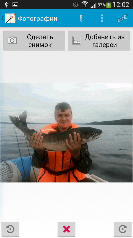 - возможность учета размера улова и суммарный вес, фотографии улова;