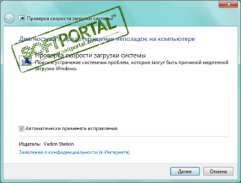CheckBootSpeed - диагностический пакет созданный на основе скриптов PowerShell, предоставляющий пользователю подробный отчет о скорости загрузки операционной системы Windows 7, а также позволяющий исправить основные системные проблемы, негативно влияющие на длительность загрузки. Входящий в пакет скрипт собирает информацию, а затем выводит в текстовом файле основные сведения о последней загрузке, состояние службы SuperFetch и ее функции ReadyBoot, данные о работе дефрагментатора диска, процент свободного места на системном разделе и сведения об операционной системе, процессоре и памяти.