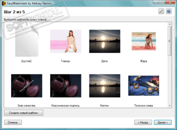 EasyWatermark - бесплатная портативная программа, которая предназначена для нанесения водяных знаков на фотографии и изображения. С помощью EasyWatermark можно изменять размер и качество изображений, присутствует пакетный режим обработки. Для нанесения водяных знаков используются шаблоны, которые можно легко изменять и создавать новые. В комплект программы входят 20 готовых шаблонов водяных знаков.