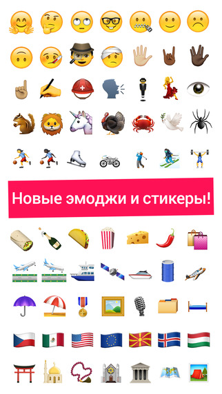- Эмоджи-клавиатура - все новые и классические иконки эмоджи, а также текстовые эмотиконы, собраны в одном месте.