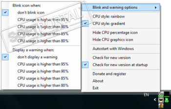 My CPU Monitor - крошечная бесплатная утилита, которая находится в системном трее и в режиме реального времени отображает использование процессора. Присутствует возможность автоматической загрузки программы и уведомления пользователя при достижении критической загрузки ЦП. Утилита не требует инсталляции.