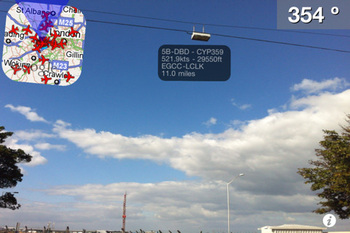 Plane Finder AR - приложение дополненной реальности, которое в режиме реального времени показывает номер рейса самолета, скорость полёта, расстояние от самолета до вас и прочие данные обо всех самолетах которые находятся в данный момент над вашей головой или заходят на посадку недалеко от вас. Такое приложение, несомненно, понравится всем террористам...