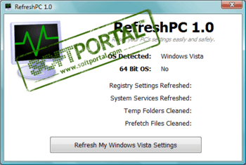 В левом меню вы можете скачать RefreshPC 2.0 бесплатно, без регистрации и ввода смс. Ссылка на скачивание прямая, поэтому вам не придется ожидать, загрузка RefreshPC начнется сразу же автоматически, без перехода на другую страницу. Размер программы составляет 1000 Кб