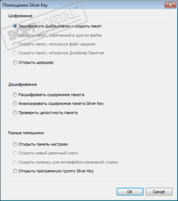 Интерфейс Silver Key прост для восприятия и понимания: Вы выбираете нужную опцию (шифрование, дешифрование, шредер и др.) и далее следуете подсказкам пошагового мастера. В целом, Silver Key простое, но вместе с тем надежное и полезное решение, которое обеспечит безопасную передачу важной информации как по открытым каналам интернета, так и с использованием съемных носителей данных.