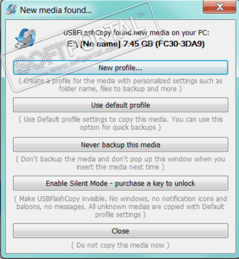 USBFlashCopy - утилита для резервного копирования данных с USB-флешек и карт памяти. Программа работает в автоматическом режиме, для копирования достаточно вставить съемный носитель в компьютер. В настройках программы предусмотрено устанавливать директорию для хранения копий, задавать скорость копирования и др.